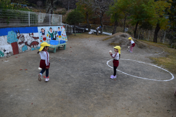 身支度が終わるとさっそく外へ遊びに行くこどもたち。