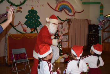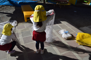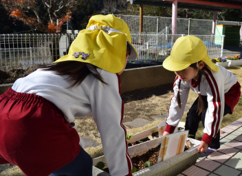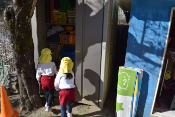 熊幼稚園の園庭で元気いっぱい体を動かして遊びました。