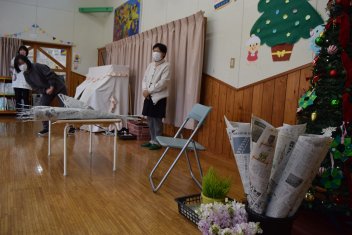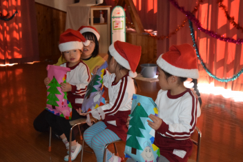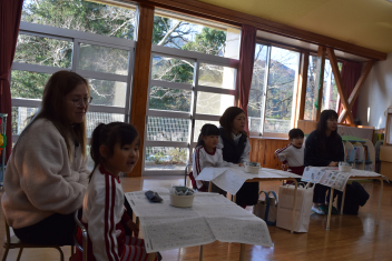 熊幼稚園のみんなが発表会で見せた『てぶくろ』の劇遊びを一緒に楽しみました。