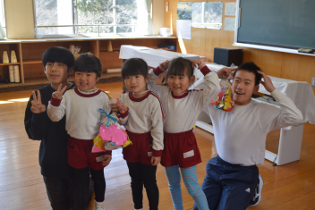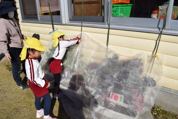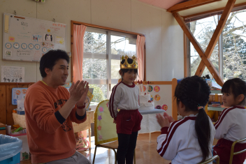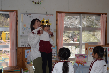 絵本で親しんでいたお話を、熊幼稚園、下阿多古幼稚園の友達と一緒に役になりきって遊ぶことができました。