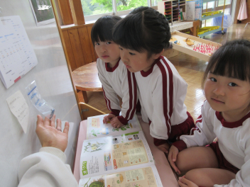 • 昨日電話で話をした北浜北幼稚園からオクラの種が届きました。朝から大喜びして、先生や友達と図鑑を見ながら種をいつ蒔こうか考えました。sad