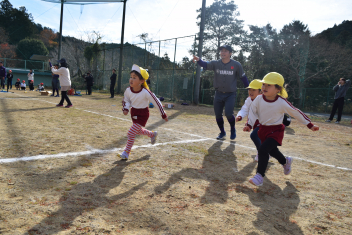 熊幼稚園の園庭で元気いっぱい体を動かして遊びました。