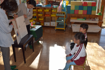 絵本で親しんでいたお話を、熊幼稚園、下阿多古幼稚園の友達と一緒に役になりきって遊ぶことができました。