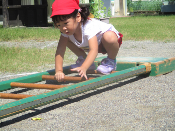年少組も、いっぱい手足を使ってはしごを渡っていますsad