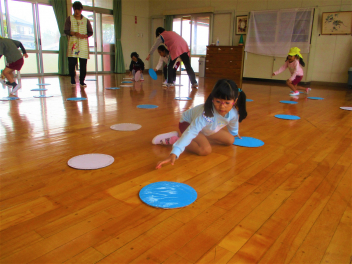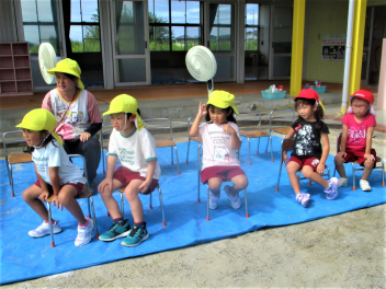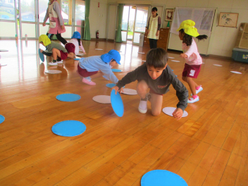 今日は、運動会で年長組が楽しんだひっくりかえしゲームを、みんなでやってみました。