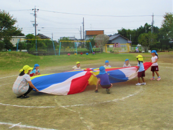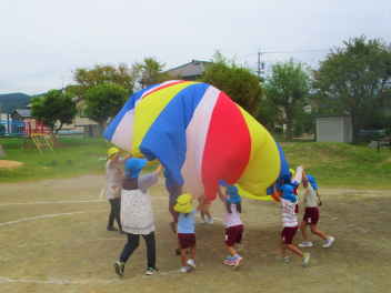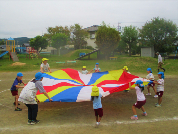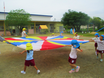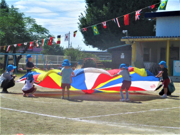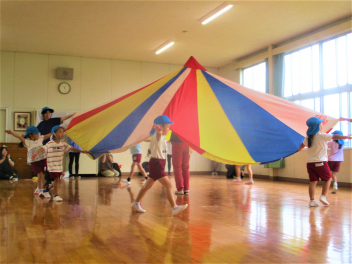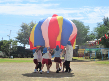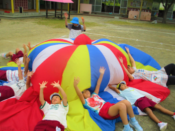 憧れのパラバルーンに触ることができて、年中組も大喜びですwink