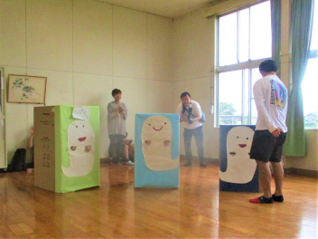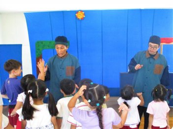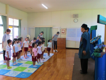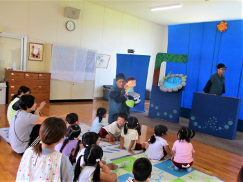 劇団の方が園まで来てくれて、楽しい人形劇を見せてくれました。