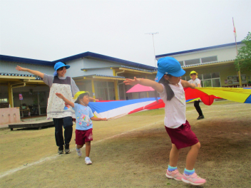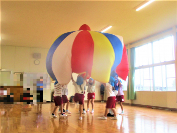 年長組が取り組んでいたパラバルーンを、年中組も一緒にやらせてもらえることになりました