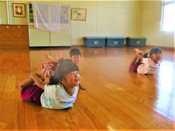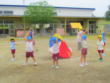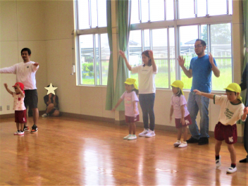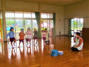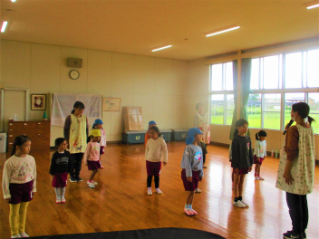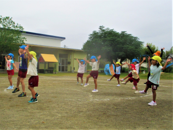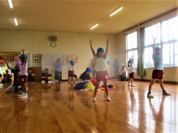 運動会でお家の人にも見てもらった「はりきりジャンボ!!!」で、体をしっかり動かします