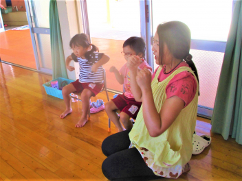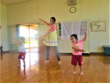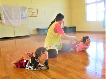 ひとつ一つの動きを、まねっこしながらやっていました。
