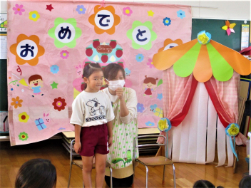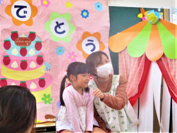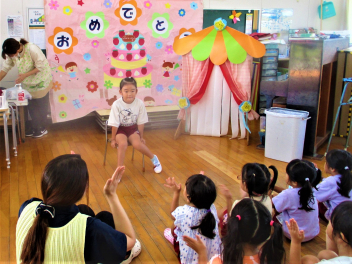 みんなからも、歌と「おめでとう」の言葉のプレゼントをしました