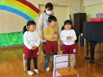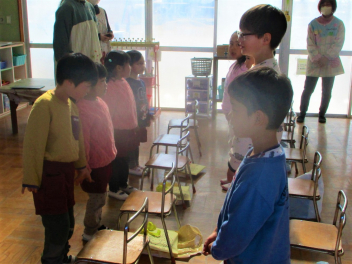 椅子から立ち上がるタイミング、待つ場所、歩き出すタイミングと、気を付けるところがたくさんありました。一人一人が自分のタイミングを覚え、立派な姿をみせてくれました