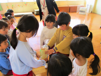 年少組と年中組で一緒につくったプレゼントも渡しました。