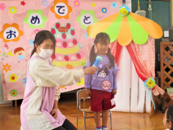 園長先生が、一人ずつ言葉を掛けながら証書を授与しました。