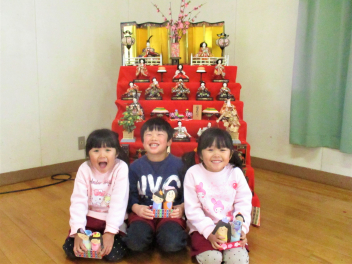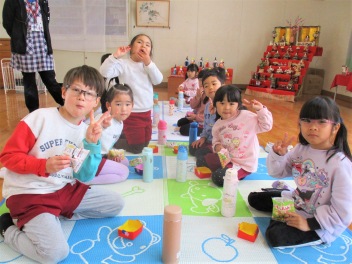 今日は桃の節句の日、みんなでひな祭り会をしました。