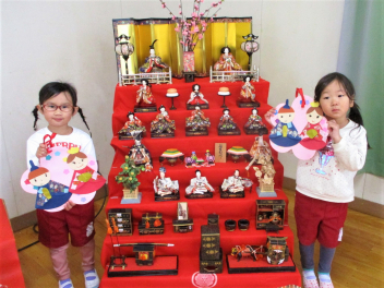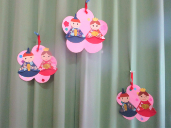 • こどもたちがつくったかわいい雛飾りが、遊戯室を彩っています