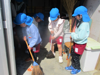 最後の掃き掃除は、すみれ組さんがやってくれました。