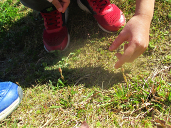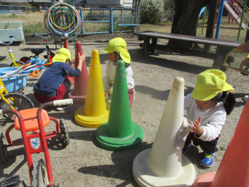 • 気持ちの良い日差しを浴びながら、外で遊んでいた年中たんぽぽ組さんが、園庭で何かを見つけたようです