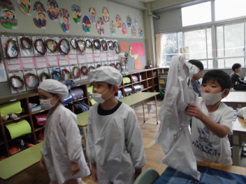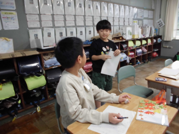 子供たちは、本当に真剣に話を聞き、メモを取りました。用意していたメモ用紙がなくなってしまったほどです。今後も様々な人にインタビューをして、自分たちにできることを考えていきます。(写真は、3時間目1組の活動の様子です)