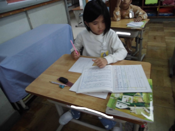 朝、6年生の教室では、とても真剣に漢字ドリルを見て学ぶ姿が見られました。