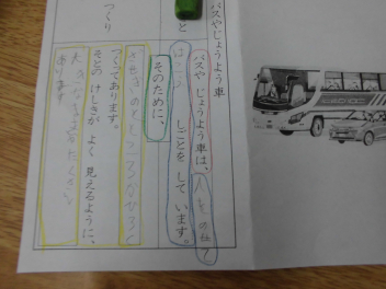 今日の学習のめあては、「バスやじょうよう車のじどう車カードをつくろう。」です。