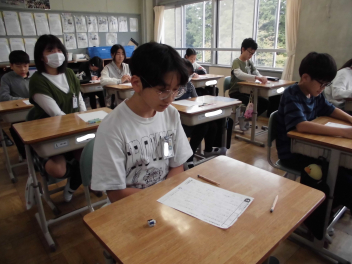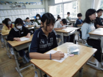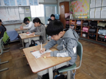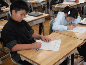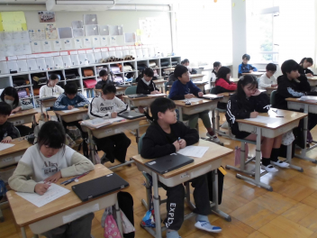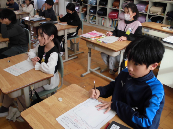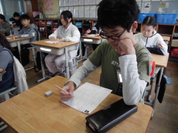 •  6年生の教室では、国語科の学習の前半に、漢字テストを行っていました。