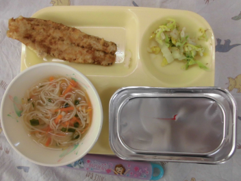 デザートは、「みかん」!!今日も一人当たり、1/2個提供されました。前回提供されたとき(10/17)より、みかんが色づきました。甘くて美味しかったです。