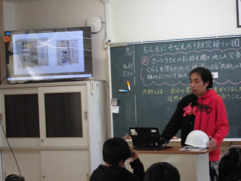 •  4年生が、南伊場の自治会長で「防災士」でもある齋藤浩二様を講師にお迎えして、社会科「自然災害からくらしを守る」の学習を行いました。