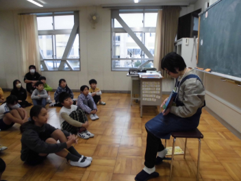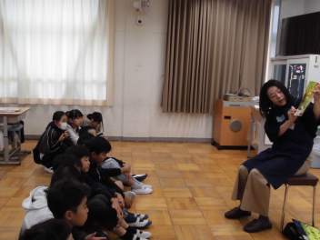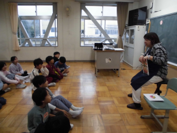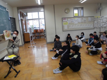 今朝は、図書ボランティア「よむよむさん」による読み聞かせで、一日がスタートしました。