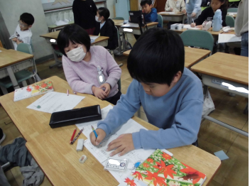 子供たちは、教科書の本文から読み取ったことをカードにまとめます。