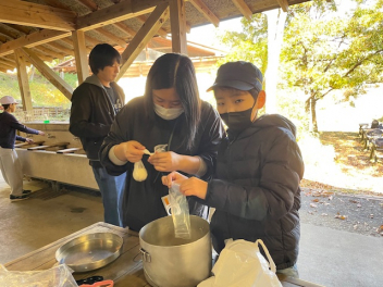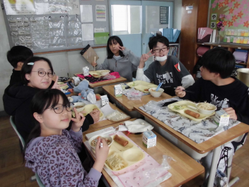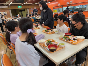 「豚汁」には、豚肉だけでなく、豆腐と大根、ごぼう、ねぎが入っていました。さばのだしがしっかりと効いた汁に豚肉やごぼうの旨味が混ざり合っていました。