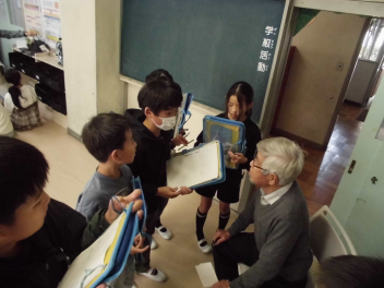 •  4年生の総合的な学習の時間では、思いやりの心を広げたり、やさしい心で支えたりしていくために、どうしていけばよいのかを考える学習をしています。今日は、西伊場敬老会から4人の方をお迎えして、3時間目には1組が、4時間目には2組が、それぞれインタビューをしました。