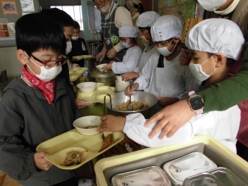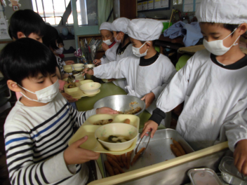 今日の献立は、「姿を変える大豆献立」です。3年生は、国語科の説明的文章の学習で、「すがたをかえる大豆」を学びます。