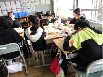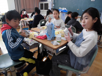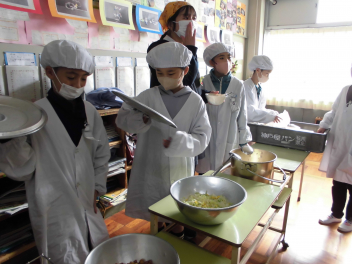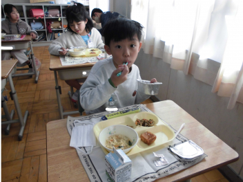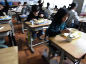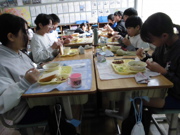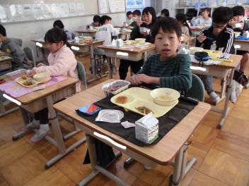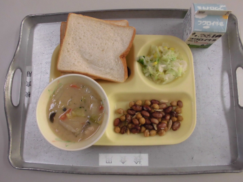 「五目きんぴら」は、カミカミメニューです。きんぴらとは、細切りにした野菜を砂糖と醤油で甘辛く炒めた日本料理の惣菜です。特にごぼうを使った「きんぴらごぼう」が有名ですが、れんこんやにんじんなどの根菜類、大根の皮など様々な野菜で作られます。今日のきんぴらには、鶏肉とこんぶ、こんにゃく、ごぼう、人参が入っていました。味付けがしっかりとしていて、美味しかったです。