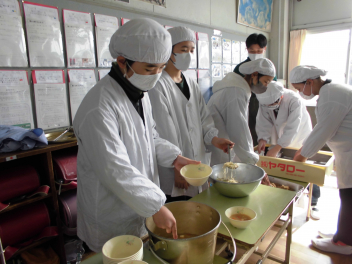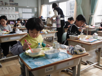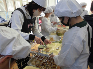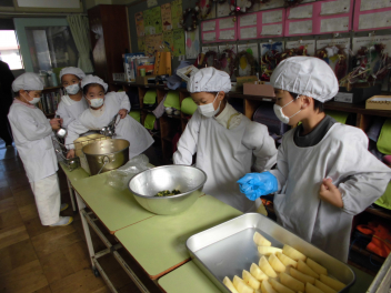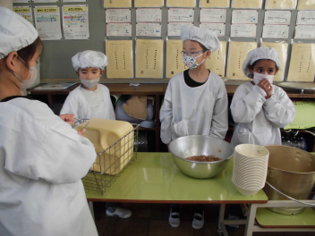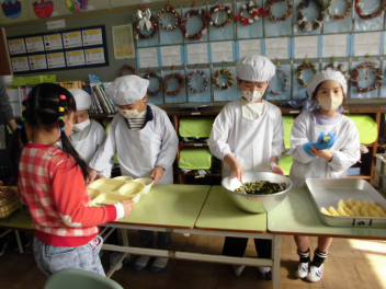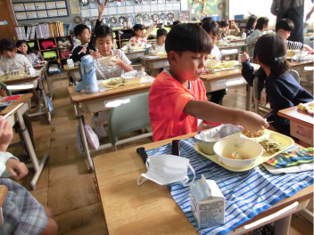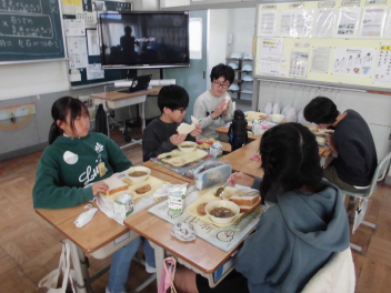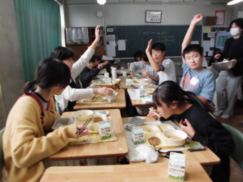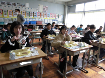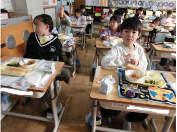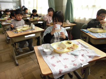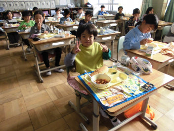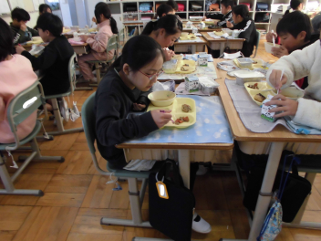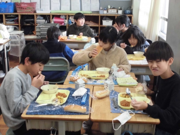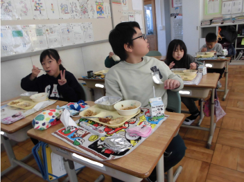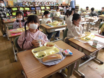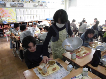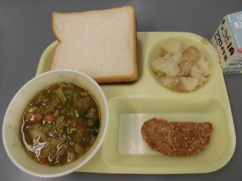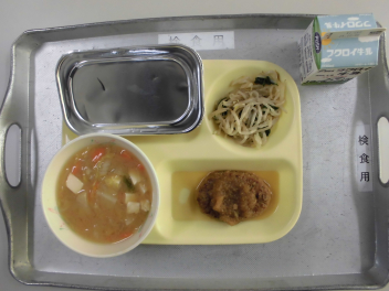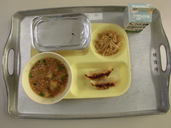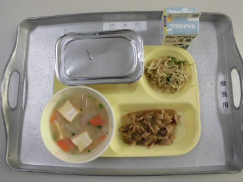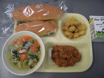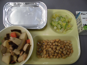 「カレースープ」には、豚肉とキャベツ、玉ねぎ、人参、タアサイが入っていました。タアサイは中国が原産の野菜で、日本にやってきたのは80年前頃といわれています。ぱっと見は小松菜や青梗菜、ほうれん草ににている印象がありますが、よく見ると全く別物です。旬は12~2月頃の冬で、収穫量が最も多いのは2月頃だそうです。国内では主に茨城県、静岡県で栽培されています。たくさんの食材が入っているスープは、食べ応えがありました。