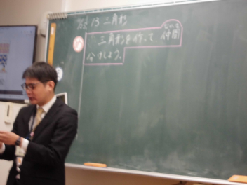 今日の学習のめあては、「三角形を作って、仲間分けしよう。」です。