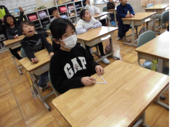 •  午後、4年生と5年生が体育館練習を行っていました。