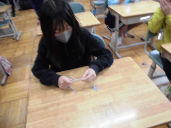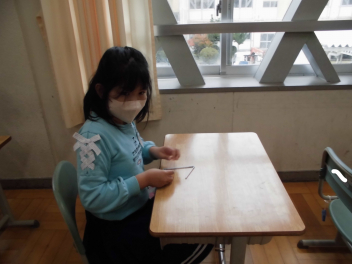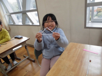 出来上がった三角形は、友達が作った三角形と同じかな?違うかな?