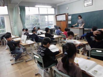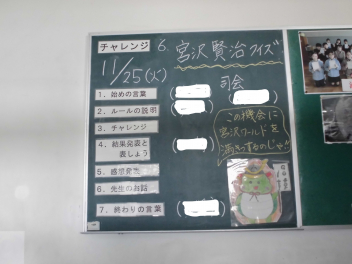 •  6年生が、学年チャレンジ「『宮沢賢治』チャレンジ」を行っていました。