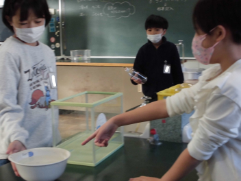 子供たちは、冷やすとへこむのではないか、温めると膨らむのではないかと予想しました。
