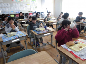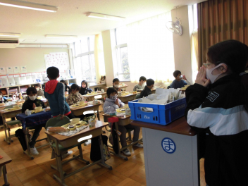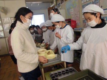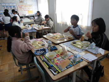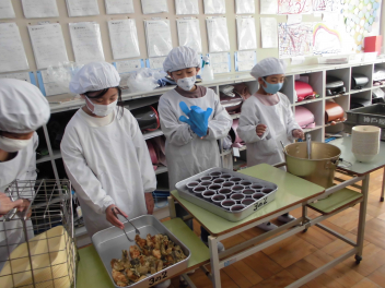「豚肉の生姜煮」は、豚肉を生姜や玉ねぎとともに、砂糖や醤油などで煮ました。生姜が効いたちょっぴり濃い目の味付けは、ご飯が進みました。ご飯にかけて食べている子供も見られました。