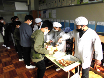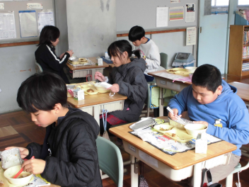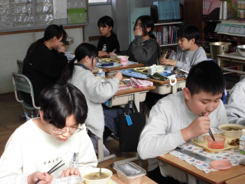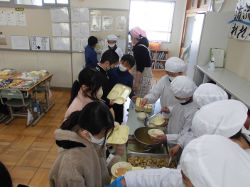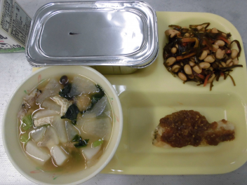 「のっぺい汁」には、油揚げと大根、ぶなしめじ、小松菜、里芋が入っていました。とろみがついているので、冷めにくく、温かかったです。