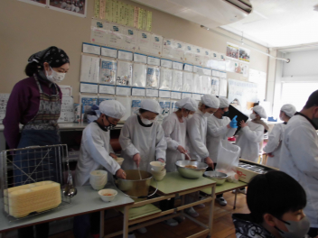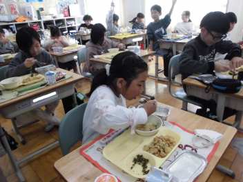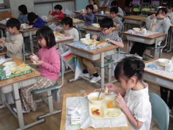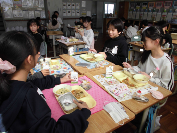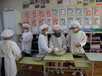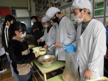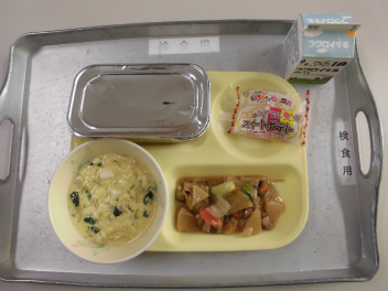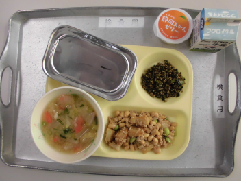 今日の献立は、ひな祭りの行事食です。ひな祭りには、女の子の健やかな成長を願って、ちらし寿司やはまぐりのお吸い物、ひなあられ、菱餅、甘酒、桜餅などの伝統的な食べ物が用意されます。これらの食べ物にはそれぞれ意味が込められています。ちらし寿司は、「寿を司る」という言葉に由来し、お祝いの席で好まれる料理です。華やかな見た目と豊富な具材が、女の子の成長を願うひな祭りにぴったりです。今日の「ちらしご飯」は、油揚げや人参、れんこん、枝豆を甘じょっぱく煮たものをご飯にかけていただきました。