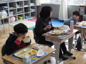 そして、デザートは「ももゼリー」!!ももの風味が春を感じさせてくれました。