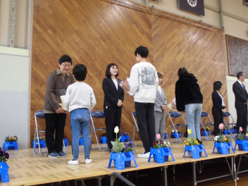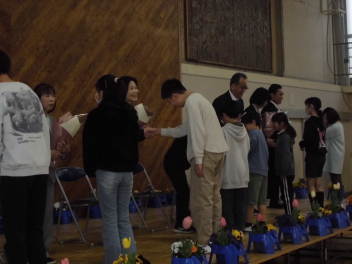 卒業証書授与では、担任から呼名されるとしっかりと返事をし、校長先生から卒業証書を受け取りました。胸を張り、堂々とした姿がとても立派でした。