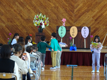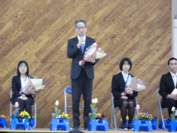 卒業生のみなさん、御卒業おめでとうございます。母校、鴨江小にも時々顔を見せに来て、中学校での楽しい話を聞かせてくださいね。