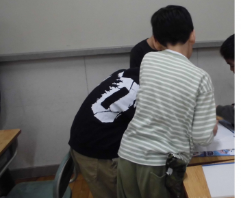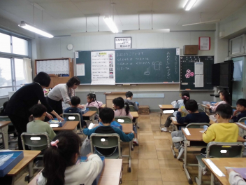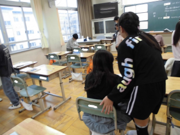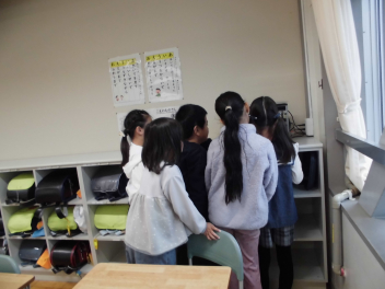 教室に入ると、6年生教室での友達とのひと時を惜しむかのように、楽しそうにおしゃべりをしたり、掲示された写真を一緒にながめたりしていました。