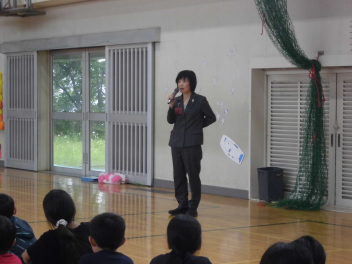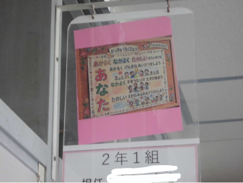 また、6年生を中心に、上級生が一生懸命準備してくれたおかげで、今日のスローガン「ようこそ1年生 明るく なかよく いらっしゃい」にふさわしい素敵な会になりましたね、とお話がありました。