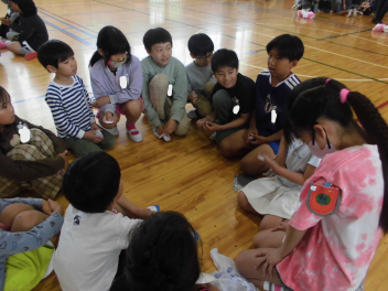 はじめに、縦割り班に分かれました。