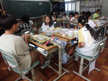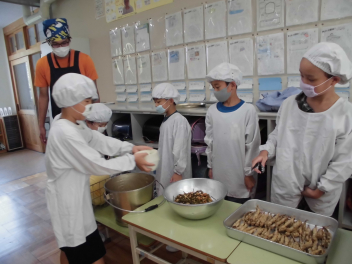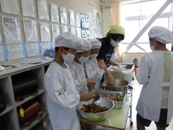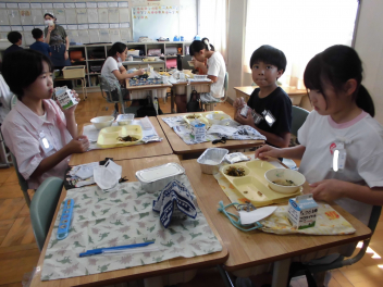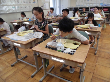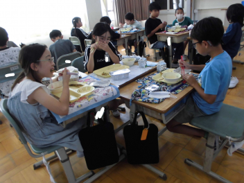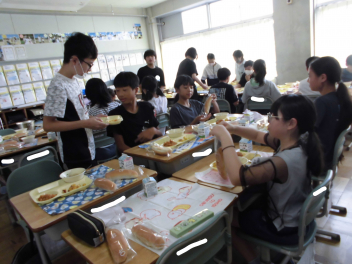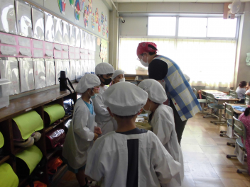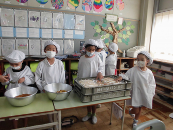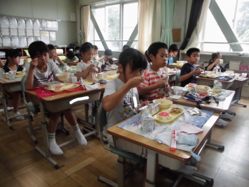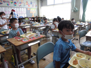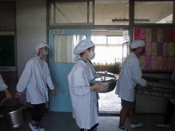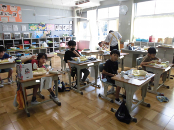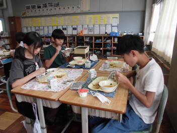 •  1・6年生となかよし学級の給食の様子です。(2年生は、校外学習に出掛けています。)